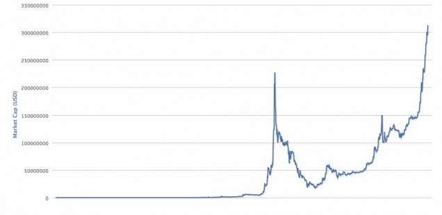 Il valore in dollari di tutti i bitcoin esistenti supera oggi i 300 milioni di dollari