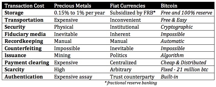 I bassi costi di transazione fanno del Bitcoin il mezzo di scambio più competitivo nella storia dell'umanità, e forse una valuta con costi di transazione ancora più bassi è teoricamente impossibile.